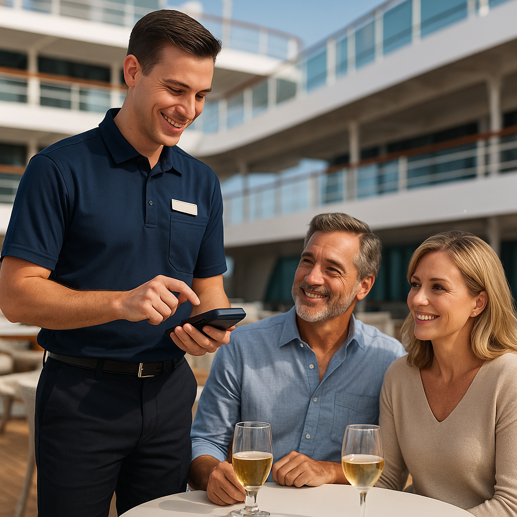 Waiters see guest preferences, historical orders, and special requests in real time, while dining reservations and POS orders stay perfectly synchronized with the guest’s itinerary