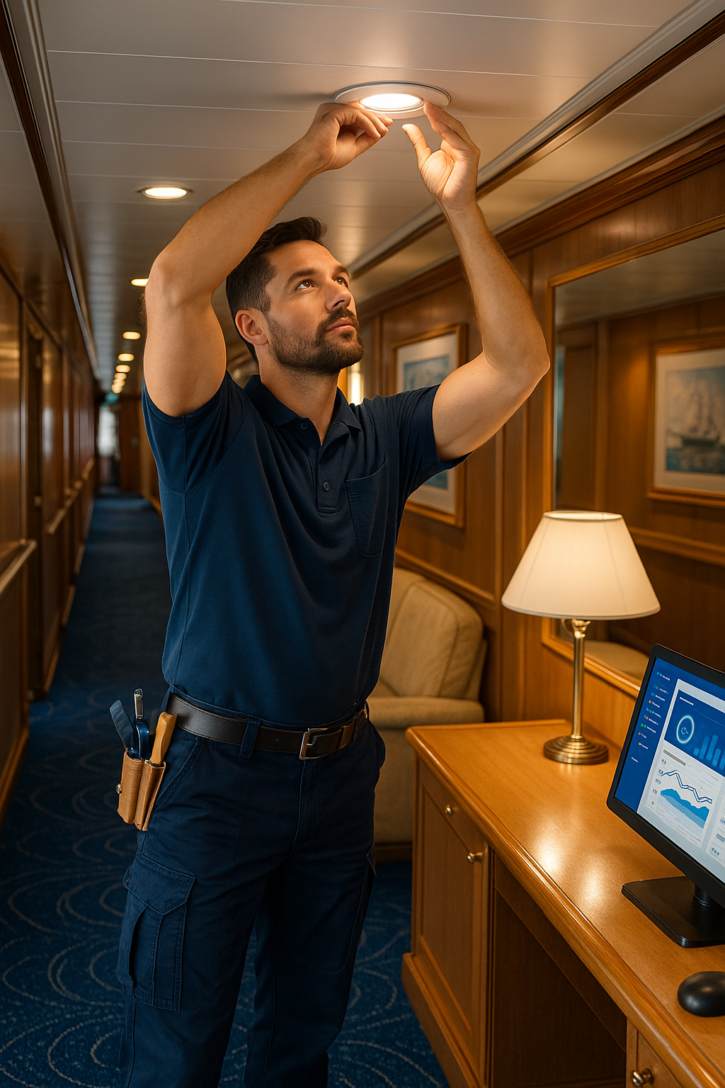 End‑to‑end flows for group handling, visitor control, embarkation, cabin status, and housekeeping tasks.